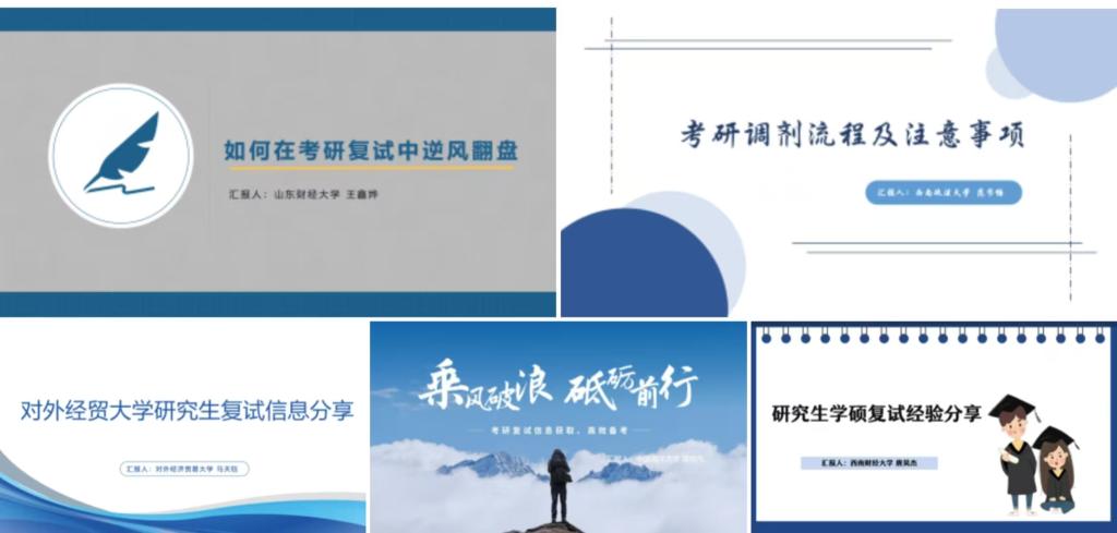 第二阶段五位2024届毕业生对同学们进行了多维度主题分享,对外经济贸易大学马天钰、中国海洋大学高怡凡、西南财经大学唐昊杰、西南政法大学范书畅和新澳彩论坛 王鑫烨同学分别就复试分数线趋势、复试前的信息获取与复习准备、保险学硕复试注意事项、调剂关键节点及意向采集、保险专硕高频考点进行了主题分享,并祝愿所有参加复试的同学们都能取得优异的成绩。会议最后,设置了答疑环节,参会同学能够针对自己的实际情况进行提问。