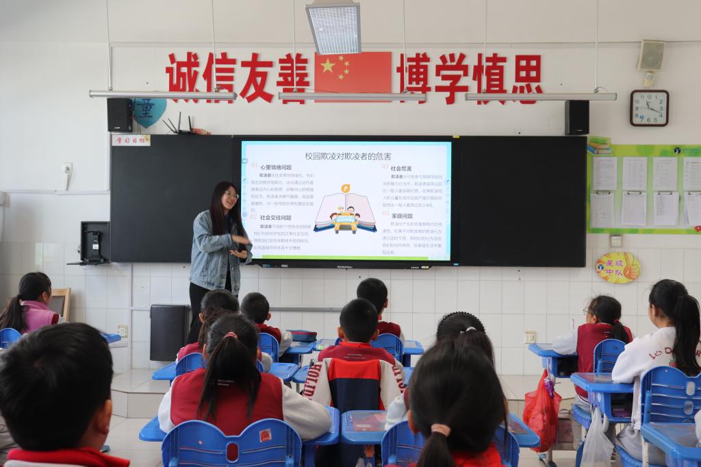 为切实预防和杜绝校园欺凌事件的发生,引导青少年学生健康快乐成长,在第29个全国中小学生安全教育日到来之际,新澳彩论坛 组织“学雷锋”大学生志愿服务队来到济南市高新区鸡山小学开展了“杜绝校园欺凌,守护美好青春”主题志愿宣讲进校园活动。