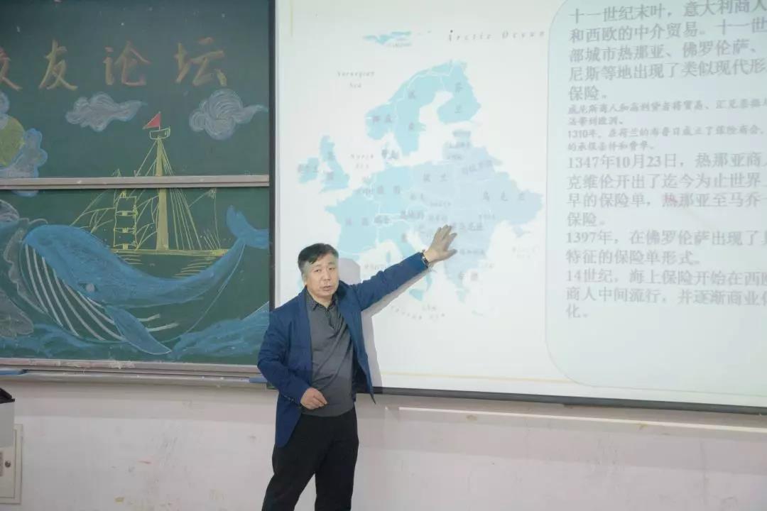赵守兵分别从保险行业的现实困境、保险行业的发展历史以及保险文化建设新视角三方面展开了深入的讲解。赵守兵向同学们介绍了保险行业的发源地——意大利,对海上保险、火灾保险和人寿保险这三类险种的发展史进行了阐述,为同学们补充了欧洲、美洲、亚洲和非洲各国保险行业起源和历史的知识,并依据时间顺序,重点向同学们介绍了我国民族保险行业的引入、中国保险行业的发展以及民族保险公司的兴起。一张张珍贵的保单、一枚枚厚重的勋章、一幅幅朝气蓬勃的照片,一个个撑起了保险行业脊梁的人……它们都在诉说着中国乃至世界保险行业艰难而又不断奋进的历史。