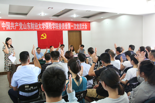 5月28日下午,新澳彩论坛 党委在舜耕校区11楼会议室召开全体党员大会,报告学院四年来的各项工作,进行党委换届选举,全院41名党员参加了会议,其中正式党员30名。学院民主党派人士闫庆悦、杨文生、李茹兰、刘素春应邀出席大会。大会由学院党委副书记张娟主持。