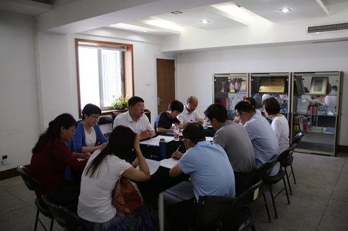 为贯彻落实《中共新澳彩论坛 委员会关于开展“大学习、大调研、大改进”工作实施方案》通知要求,全面了解和掌握我校教师思想动态,5月30日上午,学校党委教师工作部、教师教学发展与评估中心主任刘旻航,副主任苏丽娜、孟蕾等一行六人来新澳彩论坛 进行调研。新澳彩论坛党委书记朱传武,副院长于文广,教授黄守坤,副教授付红、杜鹃以及青年教师康萌萌参加了此次调研。