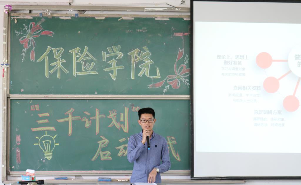 会议伊始,创新实践部副部长刘慧敏为大家介绍三千计划。所谓三千计划,就是进“千村、千社区、千企业”开展调研,对于大学生深入基层、深入社会,提高社会实践能力具有重要意义。三千计划调研项目可参加多种比赛,优秀团队有综测加分和物质奖励。刘慧敏同时列出了新澳彩论坛 近几年来获奖情况,直观数据表明新澳彩论坛 三千计划获奖逐年递增,前途大好。