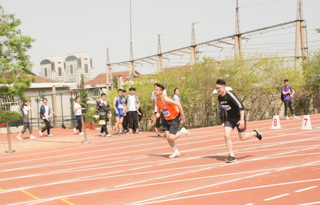 看!100 米赛道上的李智老师身姿矫健、不惧炎热、勇往直前,最终取得了第一名的优异成绩。