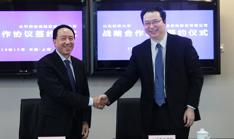 与太平养老保险股份有限公司签署战略合作框架协议仪式在上海太平金融大厦举行。校长卓志与太平养老保险股份有限公司党委书记、总经理彭毅代表双方签约并致辞,太平养老副总经理林喆主持仪式。太平养老总精算师齐美祝,总公司办公室、营销中心和山东分公司主要负责人,校长办公室、教务处、就业指导处、新澳彩论坛