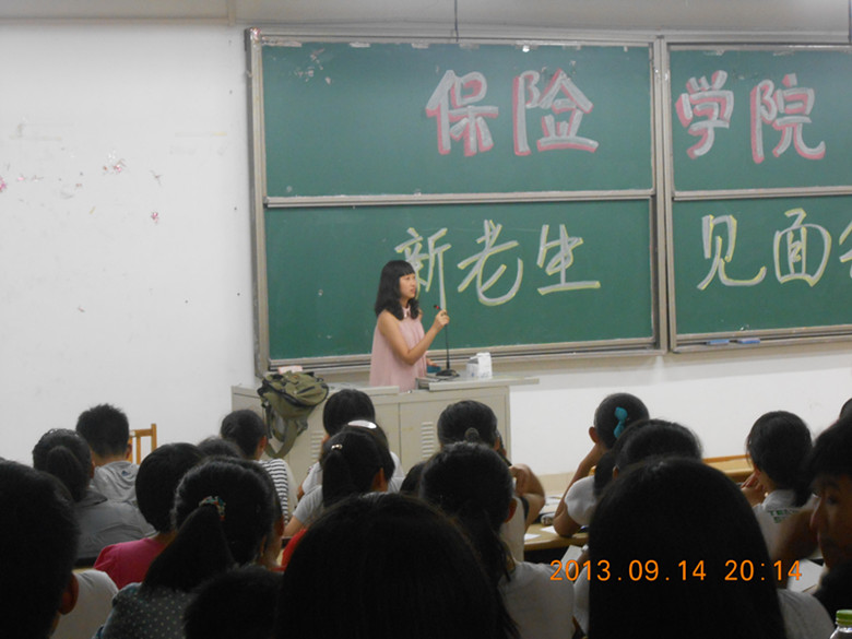 见面会由圣井校区学生会秘书长侯媛媛同学主持。李磊老师首先生动亲切地讲述了自己从大学到工作以来的种种经历,其中包括对新生大学生活的建议,以及在大学里应该锻炼的方方面面,详细分析了保险专业及今年的就业情况,增强了新澳彩论坛 新生的凝聚力,同时也增进了新生们对保险专业的前景和就业信心。学生会圣井校区负责人付聪做了简短的自我介绍后,各带班一一进行自我介绍,语言真诚而不失风趣,教室里传出阵阵掌声。