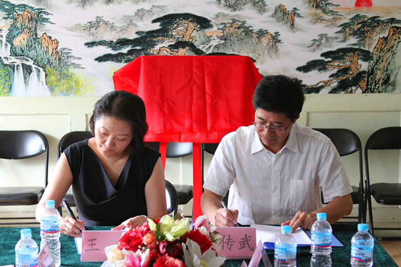 党总支书记朱传武,副院长仵颖涛、江泰保险经纪公司济南分公司总经理王红、副总经理姜东方等出席仪式。朱传武与王红代表双方在合作协议上签字,邓迎迎与王红为实践基地揭牌。揭牌仪式由副书记张娟主持。