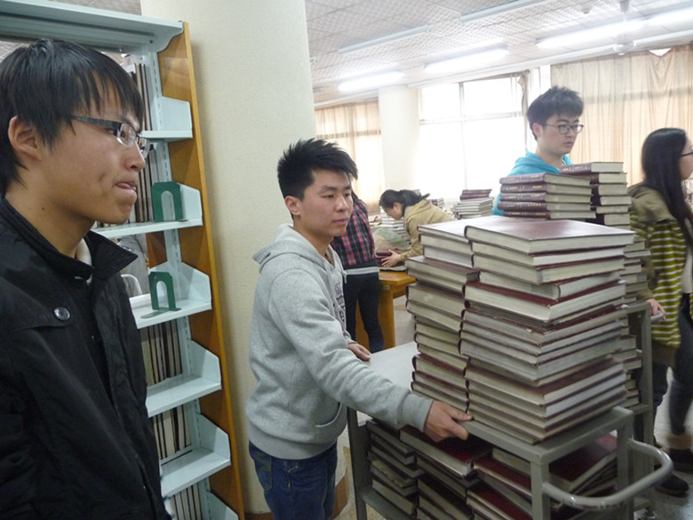 上午8:30,同学们准时到达校图书馆。在老师的组织下,有的将过期期刊搬下书架,有的对期刊进行扫描,有的将下架期刊整理打包。经过半天的义务劳动,同学们有条不紊、保质保量地完成了过刊整理的各项工作,赢得了图书馆老师的一致好评。过刊阅览室的及时整理保障了图书馆的正常开放,同时也大大方便了同学们的学习和阅读。