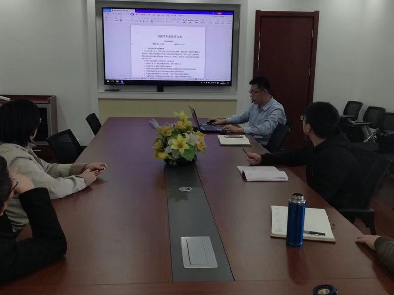 为全面贯彻党的十九大有关加快高等教育内涵建设的总体部署,落实全国高校思想政治工作会议精神,认真落实我校“以本科教育为主体、以高层次人才培养和高端社会服务为两翼”的发展战略,培养专业素质优良,富有社会责任感、创新精神和实践能力,具有国际视野的应用复合型人才,着力建设品牌特色专业,新澳彩论坛2018年11月启动了2019版本科专业人才培养方案制订工作,于2019年3月14日召开了修订审议会议,副院长于文广、精算系主任黄守坤、副主任李世龙、风险管理与保险系副主任付红和于新亮参加了会议。