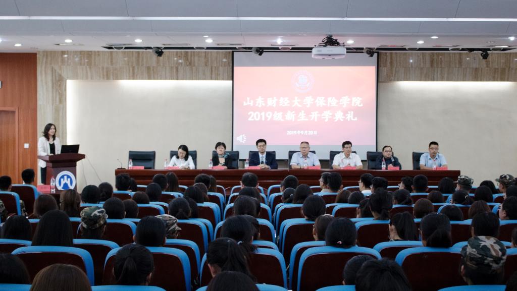 9月20日下午,新澳彩论坛 2019级本科新生开学典礼在圣井校区报告厅举行。新澳彩论坛 党委书记朱传武,院长闫庆悦,特邀嘉宾中英人寿保险股份有限公司山东分公司副总经理陈嘉林,副院长刘素春、于文广,各系主任、教师代表、院办、院学工办相关老师以及学院2019级本科生出席典礼。典礼由学院党委副书记张娟主持。