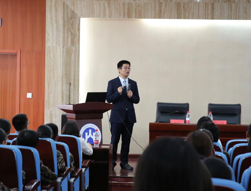 中英人寿山东分公司副总经理陈嘉林作为合作单位代表,为新澳彩论坛 2019级新生送上了精心准备的礼物——120套适合大学生阅读的书籍。随后,作了题为“VUCA时代保险的作用和意义”的演讲。他表示,在VUCA时代背景下“坚定信念、坚持行动、注重建立综合能力”将是最宝贵的品质,并从保险业发展历史、金融行业结构、市场趋势三个方面对未来的保险行业做出了分析,指明了保险、精算专业光明的未来,激励同学们扎实学好专业知识,奠定未来发展的基石,立志成为保险行业的精英人才。