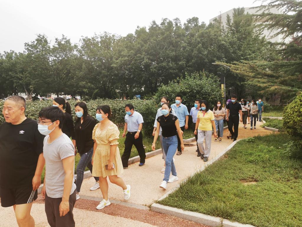 2020年6月18日下午4时许,全院教职工健步舜耕校区,从礼堂旁边的小花坛出发,沿着学校的林荫小道,游览校园的夏日风光。本次活动严格按照疫情防控护要求,参加人员全程佩戴口罩,保持间隔,老师们一边欣赏夏日中的校园,一边相互交流。因疫情沉寂了多半年的校园逐渐恢复了往日的生机,无论是楼间林下刻苦学习的身影,还是教室宿舍规范的秩序,都能感受到学校的活力与生机,看到了到这场抗击疫情的战役终将会取得胜利的信心与希望。
