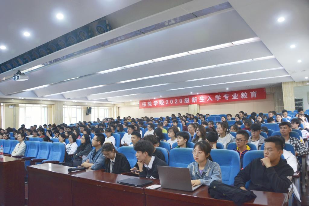 10月2日上午,新澳彩论坛 2020级新生入学专业教育大会在圣井校区第五教学楼召开。此次入学专业教育大会分为三项进行,新生入学教育由新澳彩论坛 教学秘书吕萍老师主讲,保险学专业教育由风险管理与保险系主任杜鹃老师主讲,精算学专业教育由精算系副主任李世龙老师主讲,大会由2020级、2018级辅导员陈萌老师主持。