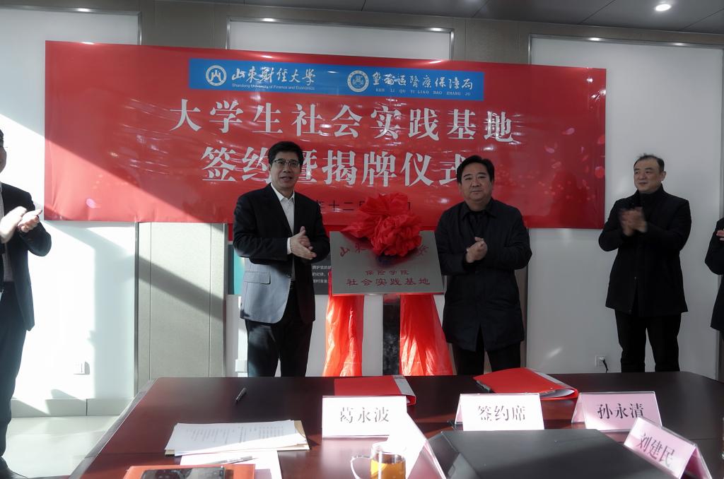 12月30日,新澳彩论坛 与东营市垦利区医保局共建保险专业及大学生社会实践基地协议签约暨揭牌仪式在垦利区医保局举行。东营市医保局副局长宋谦、垦利区副区长董强、垦利区医保局局长孙永清、中国人寿东营分公司副总经理王鹏、垦利区医疗保障服务中心主任刘建民以及新澳彩论坛 党委书记朱传武、新澳彩论坛 院长葛永波、新澳彩论坛 党委副书记张娟、新澳彩论坛 杨文生教授、于新亮副教授、范红丽副教授、学院团委副书记李智等参加签约揭牌仪式,仪式由垦利区医保局局长孙永清主持。