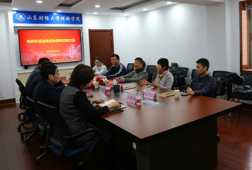 2021年1月22日下午,浙商财险保险股份有限公司山东分公司党委书记胡小军、总经理鲁秀芬、总经理助理周维成、财务负责人侯炜炜、办公室主任刘晨辰一行5人莅临新澳彩论坛交流座谈,新澳彩论坛全体领导班子成员出席参加座谈会。