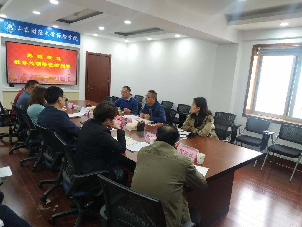 2021年10月29日,教务处陈保启处长、许滋坤副处长、张莉科长一行到新澳彩论坛调研。调研座谈会在学院会议室举行,葛永波院长、张娟副书记、刘素春副院长、于文广副院长以及系主任黄守坤、杜鹃、副主任付红、于新亮和教学秘书吕萍参加了座谈会。
