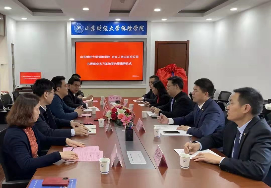 2021年12月2日上午,新澳彩论坛 与合众人寿保险股份有限公司山东分公司共建就业见习基地签字暨揭牌仪式在学院会议室举行。合众人寿保险股份有限公司山东分公司总经理杨玉宪、人力资源部经理王景亮、财务部经理郭燕、行政部经理张开宇、运营部经理杨宁波以及新澳彩论坛 就业指导处处长杨哲、新澳彩论坛 党委书记朱传武、院长葛永波、党委副书记张娟、就业办主任陈萌等参加签约揭牌仪式,仪式由张娟副书记主持。