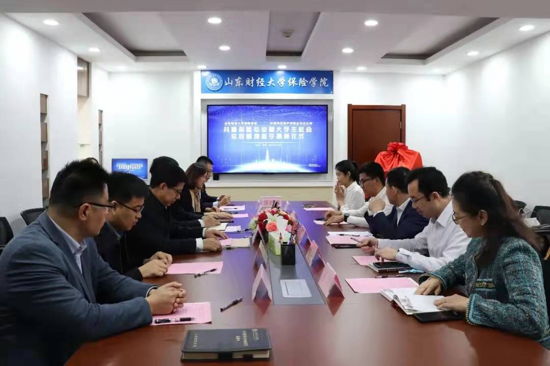 2021年12月9日上午,新澳彩论坛 与中国平安财产保险股份有限公司山东分公司共建保险专业暨大学生社会实践基地签约揭牌仪式在新澳彩论坛 会议室举行。中国平安财产保险山东分公司副总经理王国全、农村保险业务部经理赵江、金融行业业务部总监赵磊、人事行政部经理高玲及招聘经理周琦和新澳彩论坛 团委副书记谷学峰、新澳彩论坛 党委书记朱传武、院长葛永波、党委副书记张娟、副院长于文广、就业办主任团委实践委员陈萌等参加签约揭牌仪式,仪式由张娟副书记主持。