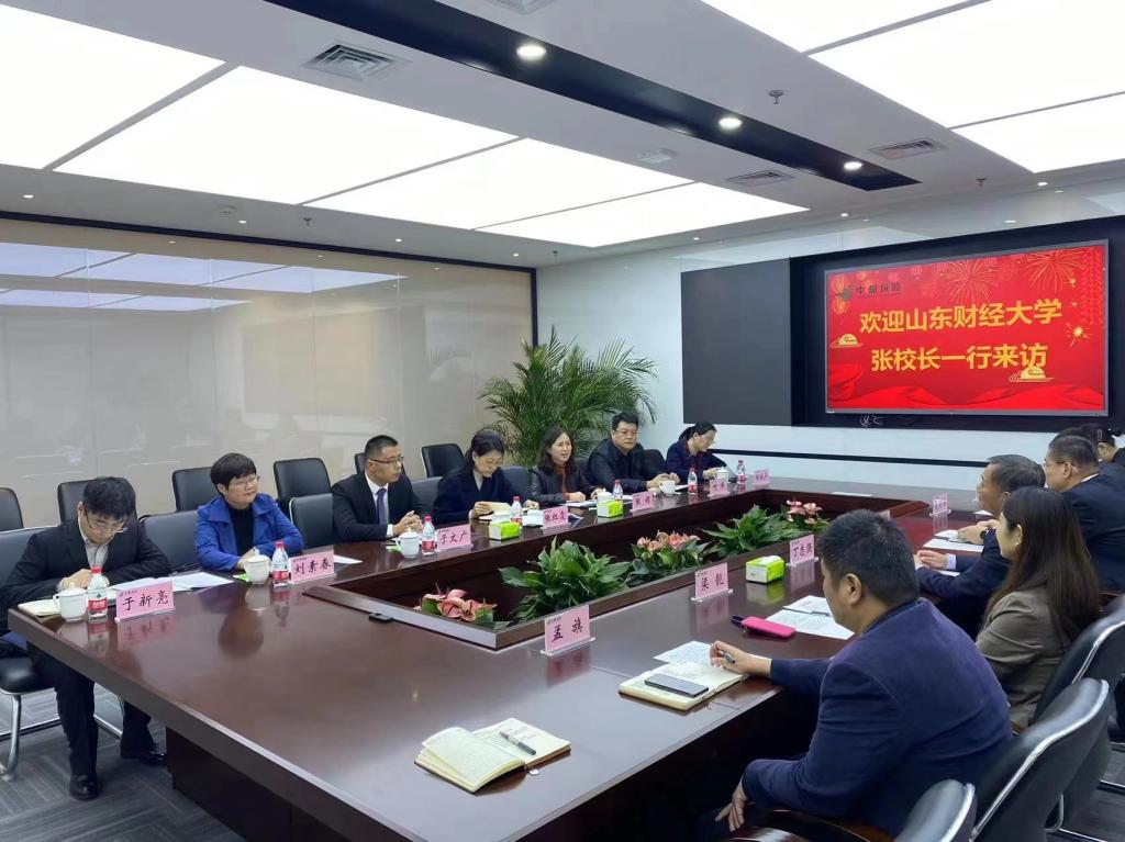 张红霞一行首先来到大地财产保险股份有限公司,在大地财产保险山东分公司党委书记、总经理路文孝陪同下参观了企业职场,观看了公司宣传片。在座谈会上,路文孝对张红霞一行表示热烈欢迎,详细介绍了公司的架构、集团发展前景、人才需求方向,提出希望双方在多方位、多领域开展校企合作,通过提供就业和实习见习岗位、建立校外导师制、设置奖学金等一系列举措与学校建立全方位战略合作关系,共同培养德才兼备的复合型保险专业人才。