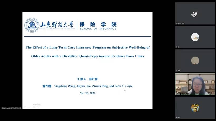 论坛分为大会主旨演讲、中国精算教育论坛(圆桌会议)、平行论坛、本科生保险产品设计、研究生风险管理竞赛等部分。期间,于文广院长在论坛大会做题为“代际转移与商业养老保险对老年收入的影响差异研究”的主旨演讲,于新亮副院长参加中国精算教育论坛(圆桌会议)就“保险行业高质量发展与中国精算教育现代化”议题与各兄弟高校进行深入交流,范红丽教授在健康与养老专题平行论坛报告论文《The Effect of a Long-Term Care Insurance Program on Subjective Well-Being of Older Adults with a Disability: Quasi-experimental Evidence from China》。