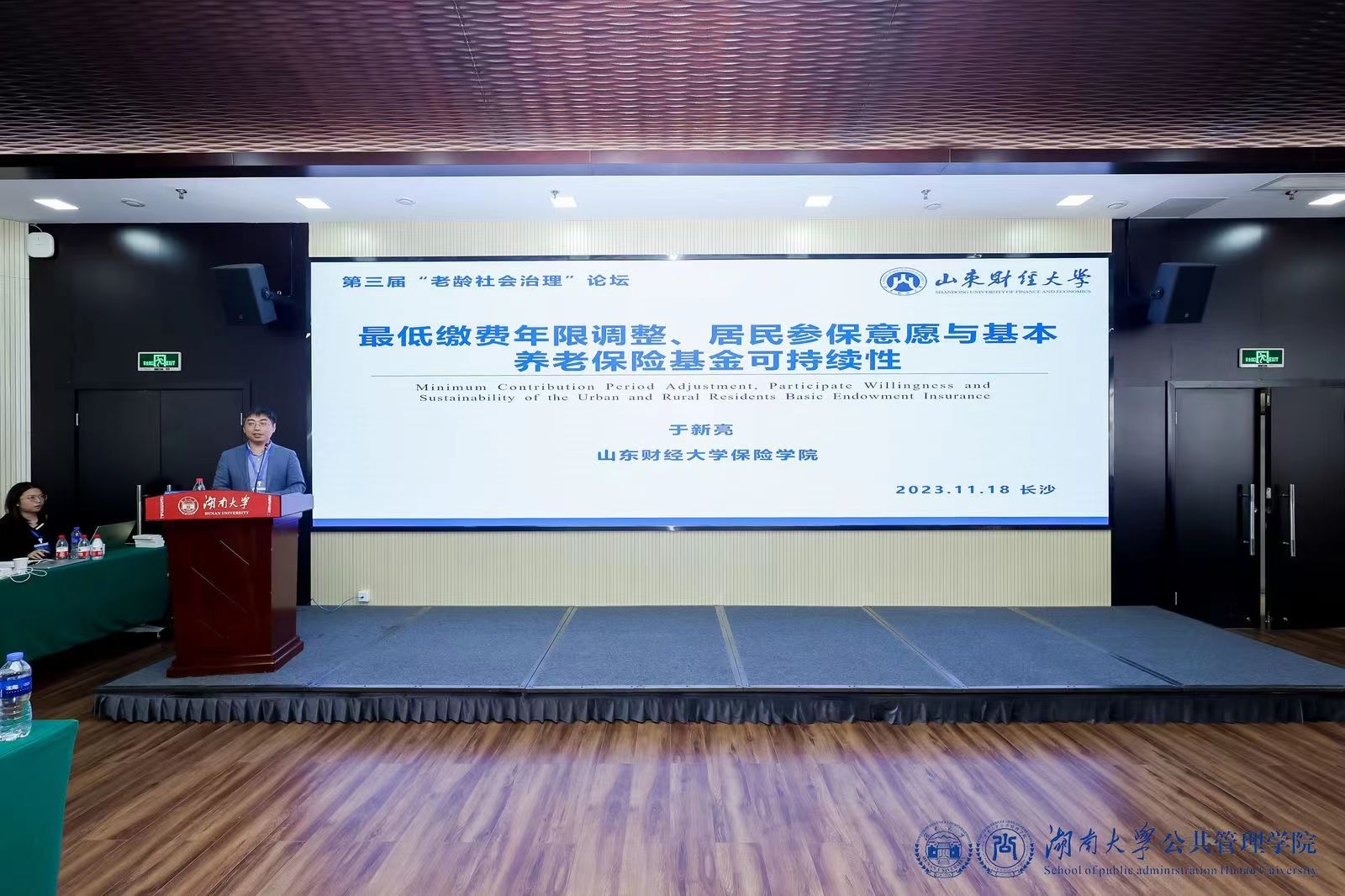 2023年11月18日,由湖南大学公共管理学院主办的第三届“老龄社会治理”论坛会议在湖南大学顺利举行,新澳彩论坛于新亮教授等师生应邀参加本次论坛。