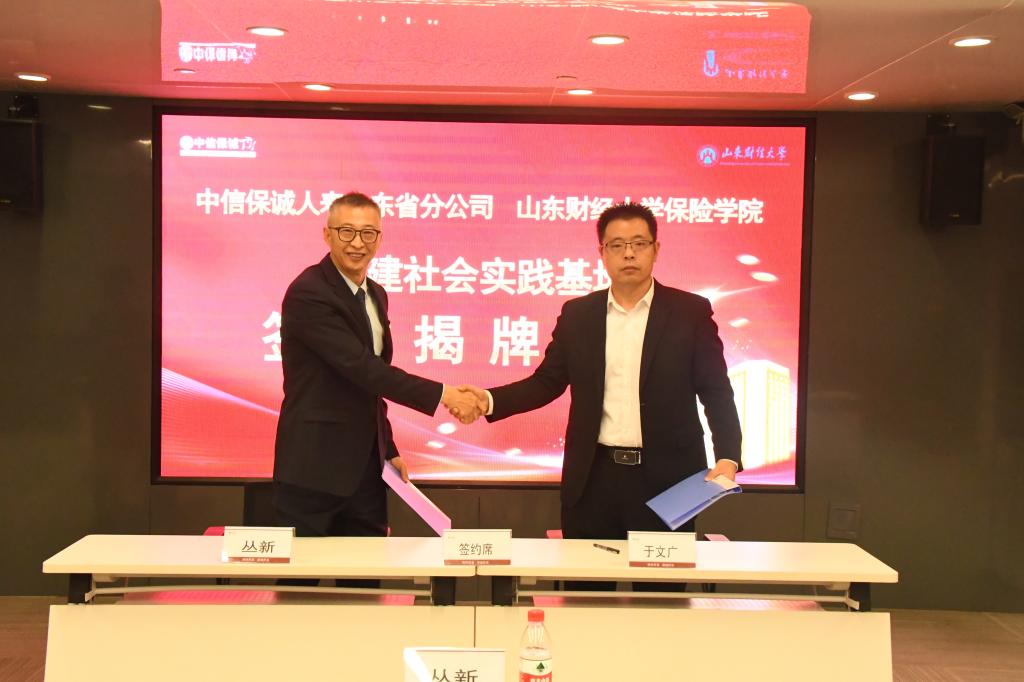 12月14日下午,新澳彩论坛 与中信保诚人寿山东分公司共建大学生社会实践基地签约暨揭牌仪式在中信保诚人寿山分公司举行。新澳彩论坛 党委书记张娟、院长于文广、副书记陶晓华、团委书记李智,中信保诚人寿山东分公司总经理、党支部书记丛新,人力资源部总经理、纪检委员许肖以及公司各部门主管以上干部参加活动。