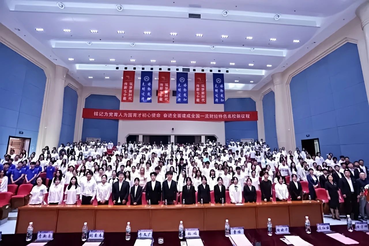 在校生代表、新生代表分别发言。2022级精算学二班的陈夏煊结合了自身的成长经历,向同学们分享了自己的感悟与对新同学的勉励。2024级精算二班许启茗同学表达了对未来学习生活的憧憬与期待。值得一提的是,60年前,许启茗的爷爷在学校前身——山东财经学院学习。典礼现场播放了许启茗82岁高龄的爷爷专门录制的视频,视频中的他深情地表达了对母校的思念、感激与祝福之情。