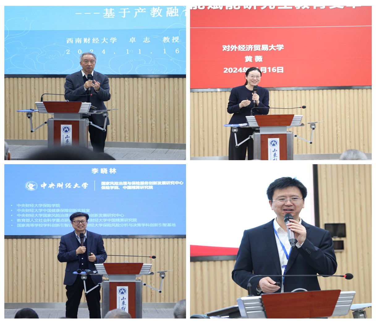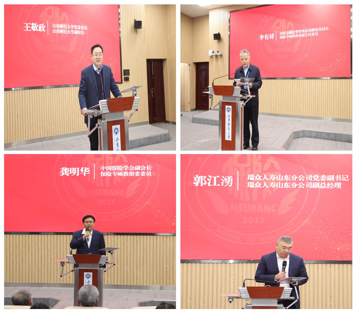 11月15日至16日,全国保险专硕教指委会暨全国保险专硕教育年会在我校成功召开。国家金融监督管理局稽查局局长、全国保险专业学位研究生教育指导委员会(以下简称教指委)副主任委员李有祥,教指委副主任委员、西南财经大学原校长卓志教授,教指委委员、对外经济贸易大学副校长黄薇教授,教指委副主任委员、中央财经大学新澳彩论坛 、中国精算研究院李晓林教授,中国保险学会党委副书记、副会长龚明华,瑞众人寿山东分公司党委副书记、副总经理郭江湧,我校副校长王敬政出席会议。