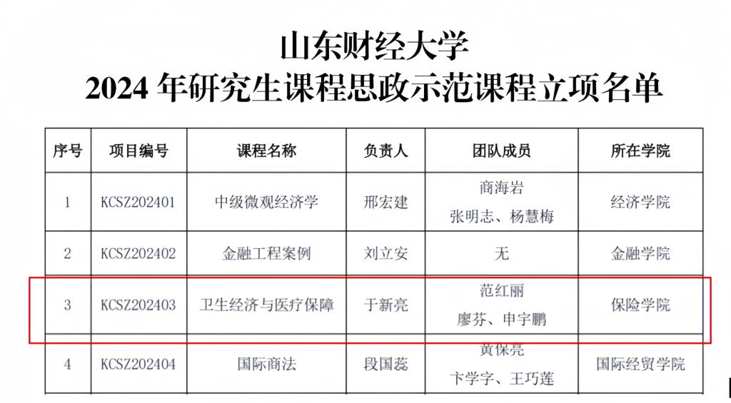 近日,学校公布了2024年研究生课程思政示范课程立项名单,经个人申报、学院推荐、专家评审,最终评选出2024年校级研究生课程思政示范课程8项。其中,新澳彩论坛申报的《卫生经济与医疗保障》课程成功入选。