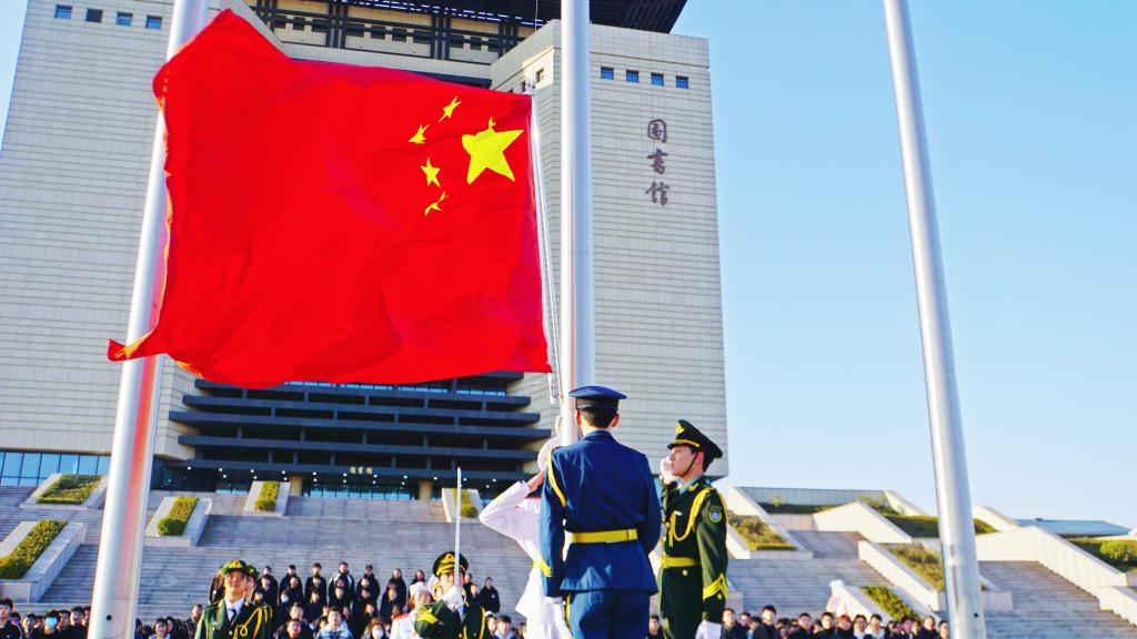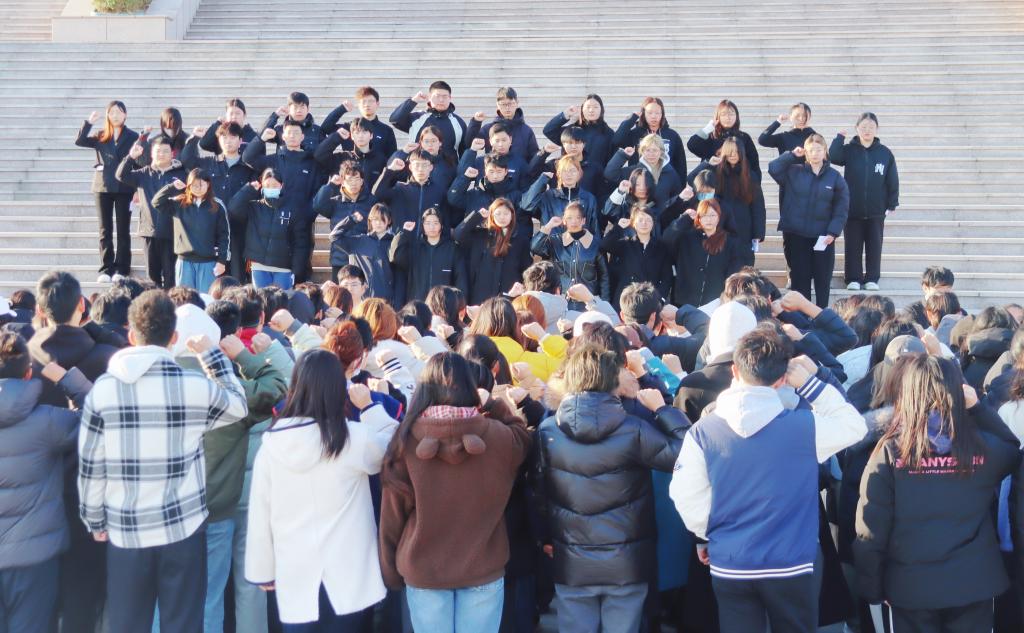 随后,全体学子高举右拳面向国旗宣誓,“以青春之名,立鸿鹄之志;承先辈薪火,担复兴之任!”誓言响彻校园。