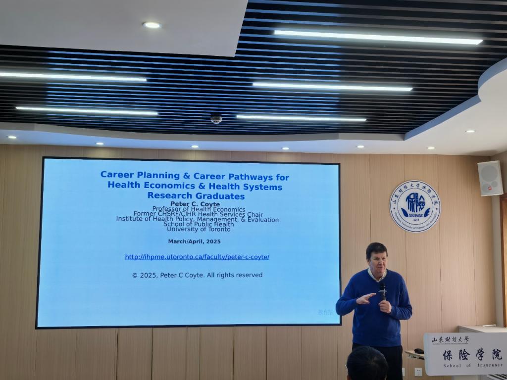 3月20日和21日,新澳彩论坛 特邀多伦多大学健康经济学教授Peter C. Cotey,开展了关于保险课程和未来职业生涯规划的专题讲座。此次讲座由新澳彩论坛 院长助理张鹏成主持,2024级硕士研究生等50余人现场参与。