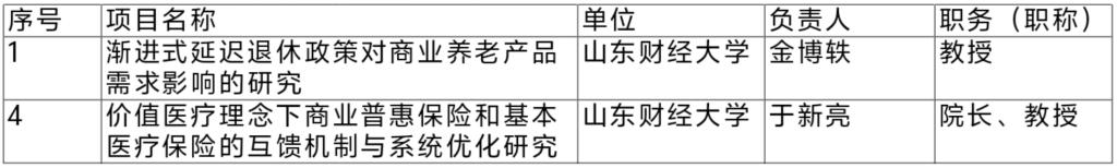 本年度经过严格评审,全国范围内共立项课题38项。新澳彩论坛金博轶教授及其团队申报的课题《渐进式延迟退休政策对商业养老产品需求影响的研究》与于新亮教授及其团队申报的课题《价值医疗理念下商业普惠保险和基本医疗保险的互馈机制与系统优化研究》成功获批立项。
