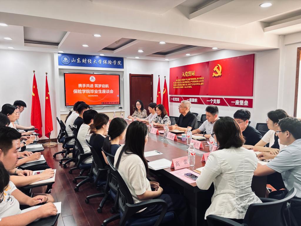 于新亮对同学们提出的宝贵意见和建议表示诚挚感谢。他结合专业特色,以“倾听者、回应者、同行者”三重身份,用三组饱含深意的“保险术语”为毕业生送上独特祝福:愿大家从“免赔额”走向“无免赔”,让每一次选择都成为人生的“增值服务”;从“等待期”迈向“终身寿”,让生命每个阶段都充满“确定收益”;从“保单生效日”到“终身续保日”,母校永远是学子最坚实的“再保险人”。