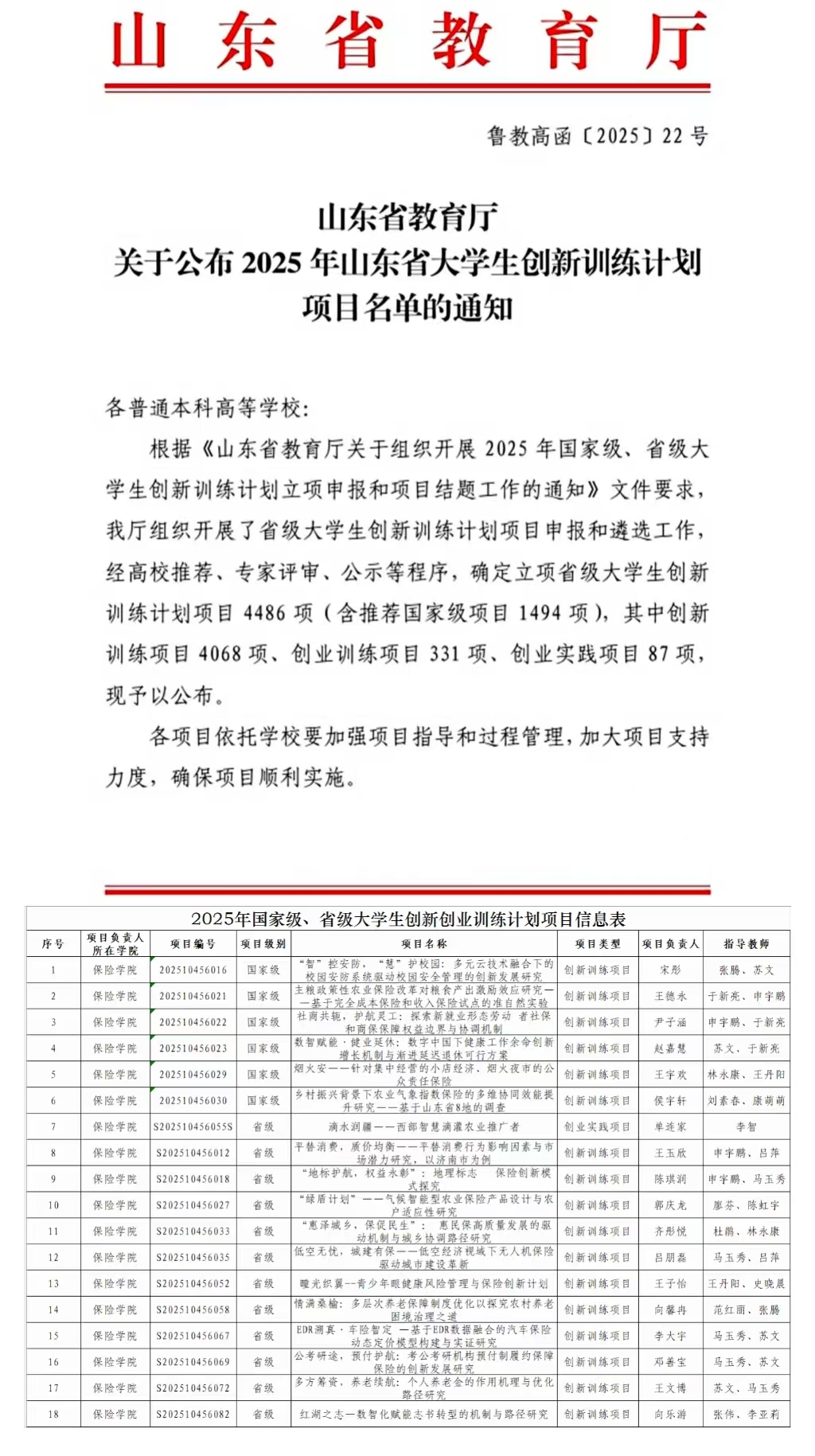 近日,山东省2025年大学生创新训练计划项目立项名单正式公布。新澳彩论坛 师生凭借独特的创新视角、扎实的专业基础与精细的项目设计,获批国家级立项6项、省级立项12项,国家级立项人次32人,省级立项人次80人,立项数、立项人次和立项率连续五年持续突破、再创新高。我校共获批43项国家级项目立项、84项省级项目立项,新澳彩论坛 项目立项总数、立项总人次和申报总数量位列全校第一。