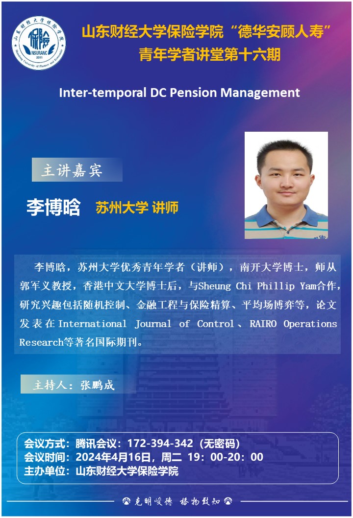新澳彩论坛 “德华安顾人寿”青年学者讲堂(第十六期),4月16日,19:00,报告人:李博晗