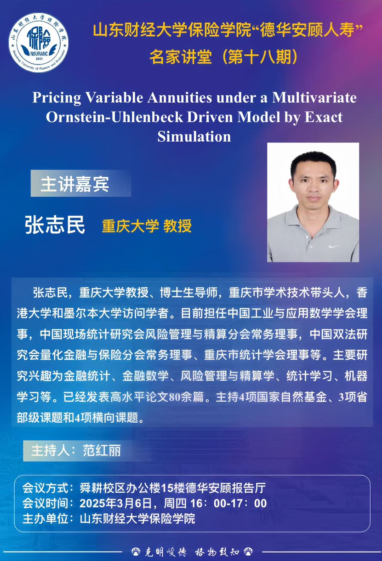 新澳彩论坛 “德华安顾人寿”名家讲堂(第十八期),3月6日,16:00,报告人:张志民