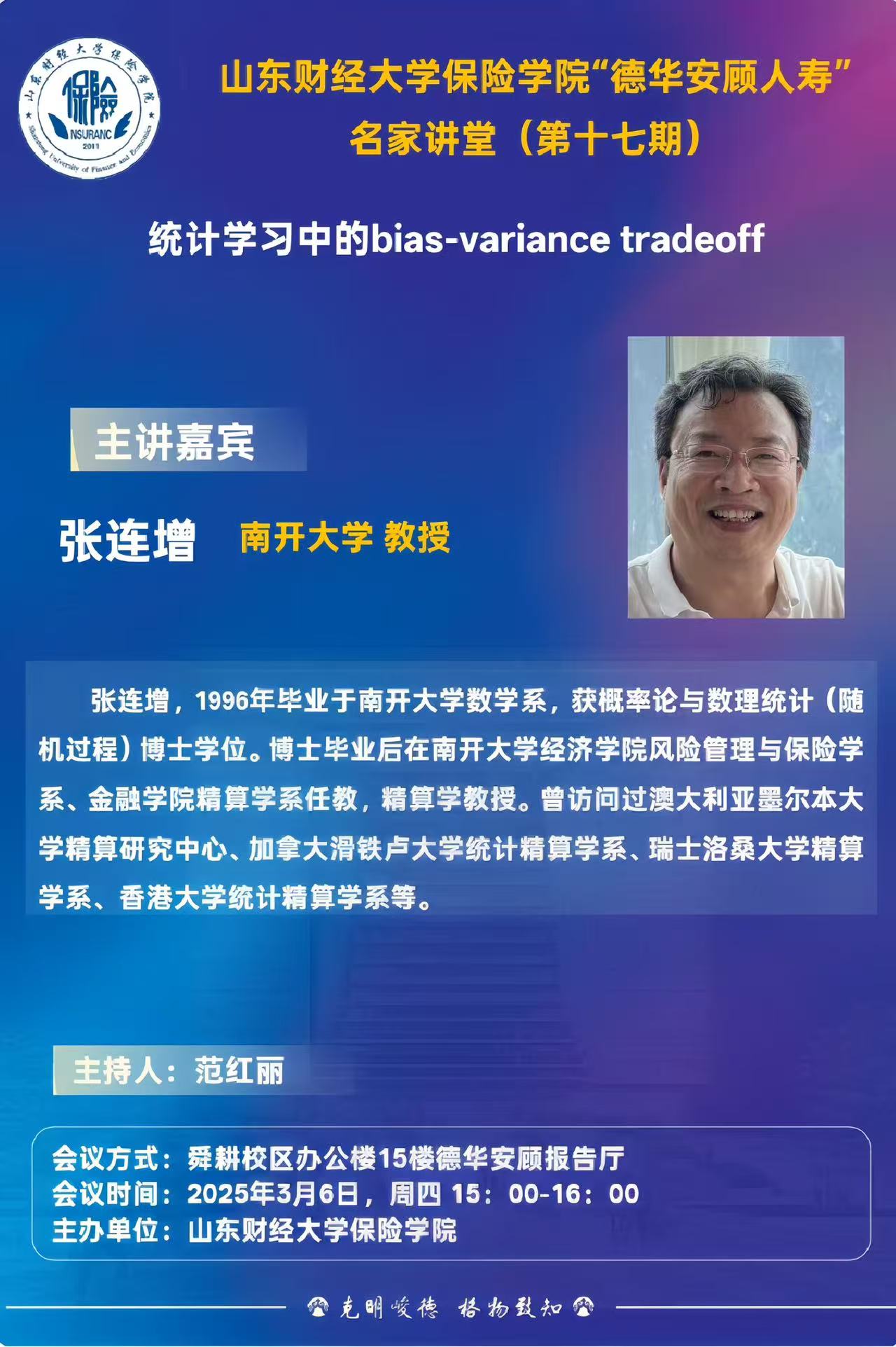 新澳彩论坛 “德华安顾人寿”名家讲堂(第十七期),3月6日,15:00,报告人:张连增