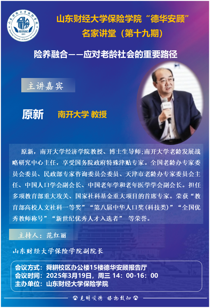 新澳彩论坛 “德华安顾”名家讲堂(第十九期),3月19日,14:00,报告人:原新