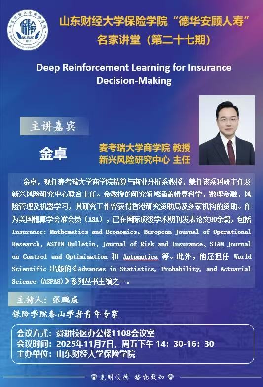新澳彩论坛 “德华安顾人寿”名家讲堂(第二十七期),11月7日,14:30,报告人:金卓