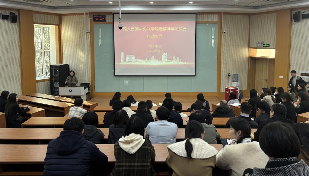 为深入贯彻中央八项规定精神,3月20日下午,新澳彩论坛 党委在舜耕校区第二阶梯教室启动部署深入贯彻中央八项规定精神学习教育。大会由新澳彩论坛 党委书记张娟主持,学院全体党员参加。