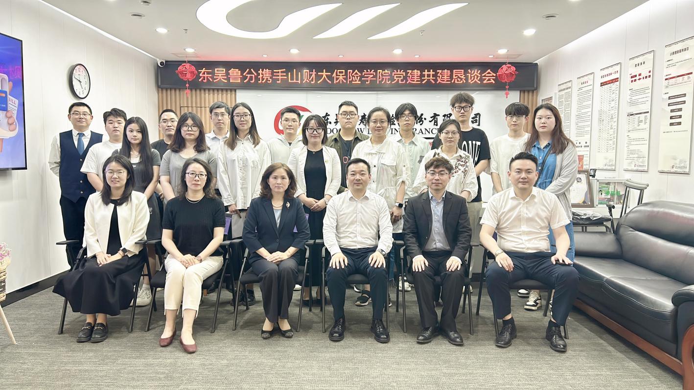 为充分发挥党建引领作用,推动产教融合向更高质量、更深层次发展,提高人才培养质量,拓宽学生就业渠道,5月13日,新澳彩论坛 赴东吴人寿山东分公司举办党建共建恳谈会暨访企拓岗活动。东吴人寿山东分公司党支部书记、总经理朱明,新澳彩论坛 党委书记张娟、院长于新亮及双方党员、师生代表共计30余人参会。